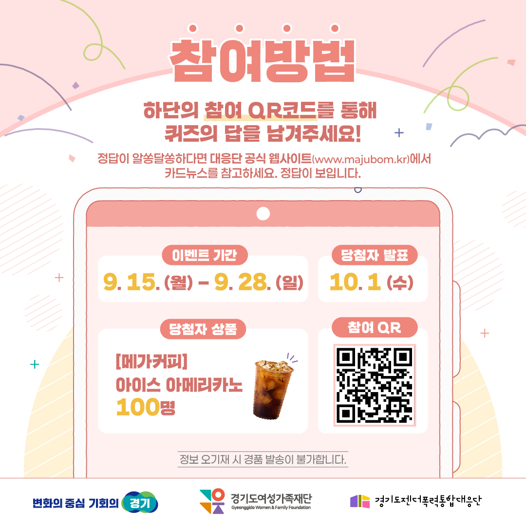경기도젠더폭력통합대응단 바로알기 퀴즈 2단계 미션 당첨자 공지