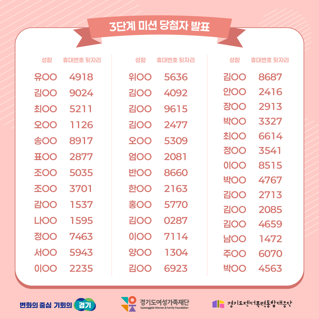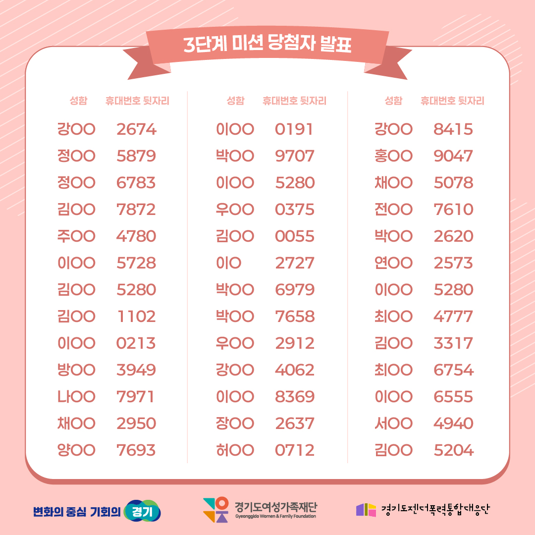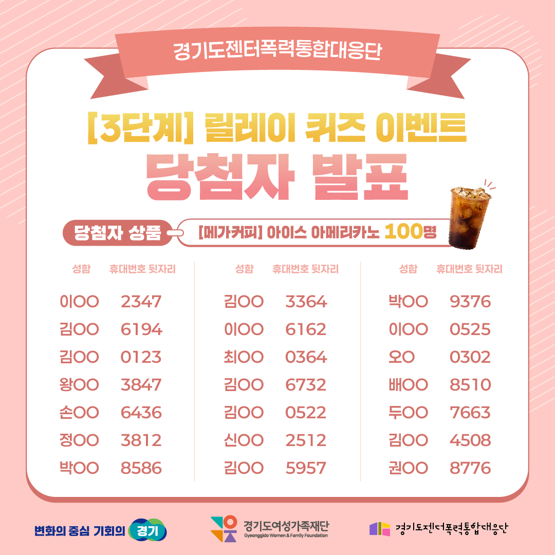 경기도젠더폭력통합대응단 바로알기 퀴즈 3단계 미션 당첨자 공지