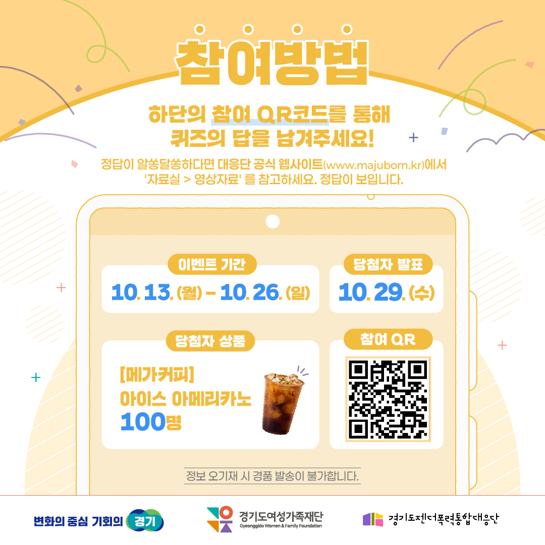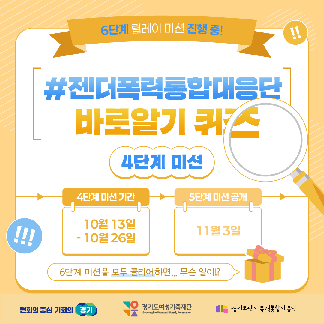 경기도젠더폭력통합대응단 바로알기 퀴즈 4단계 미션 당첨자 공지