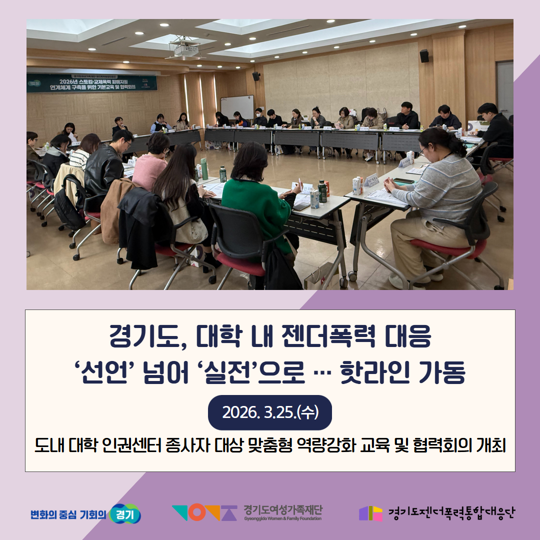 경기도, 대학 내 젠더폭력 대응 ‘선언’ 넘어 ‘실전’으로 …핫라인 가동