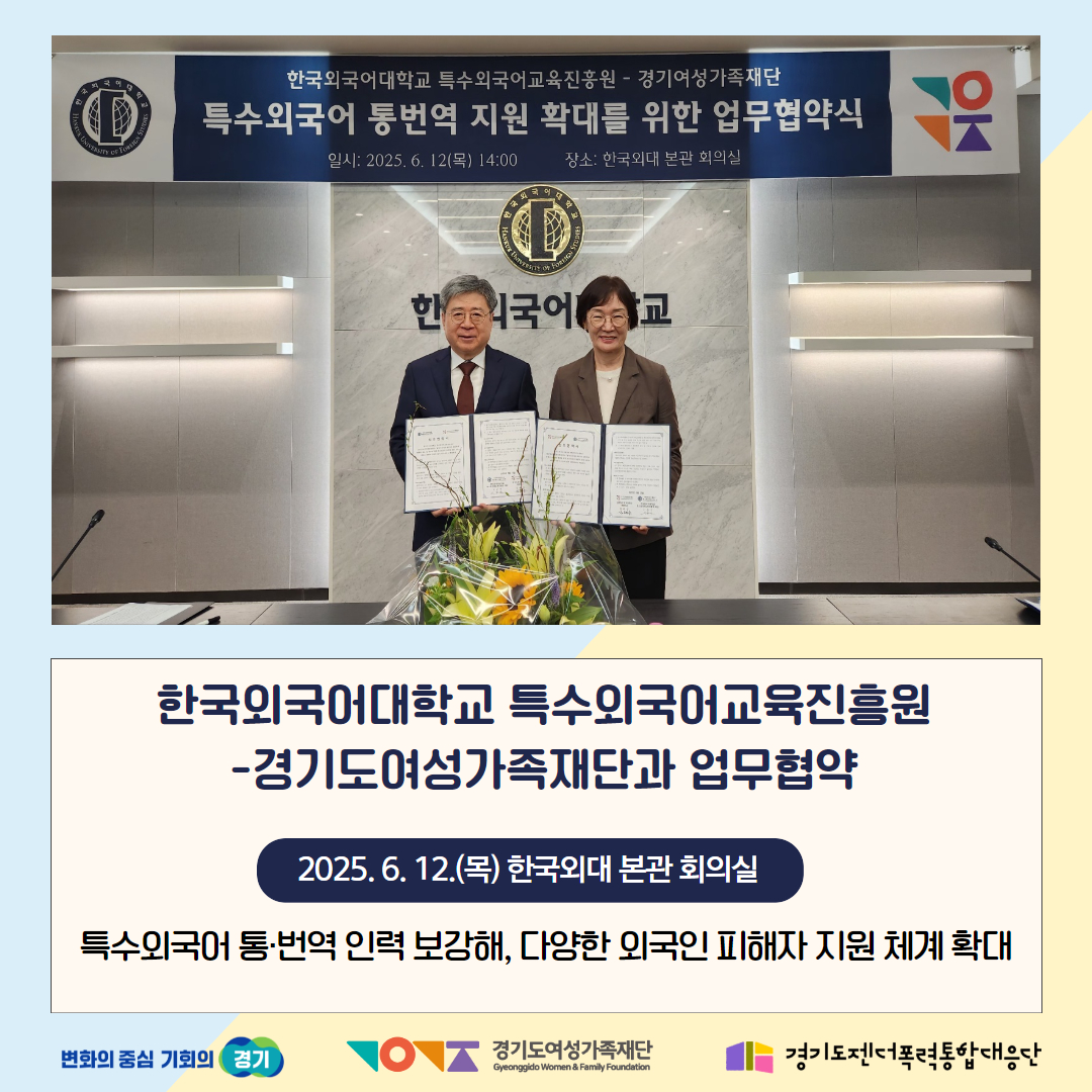한국외국어대학교-경기도여성가족재단, 통번역인력 강화 통한 외국인 젠더폭력 피해자 지원 확대