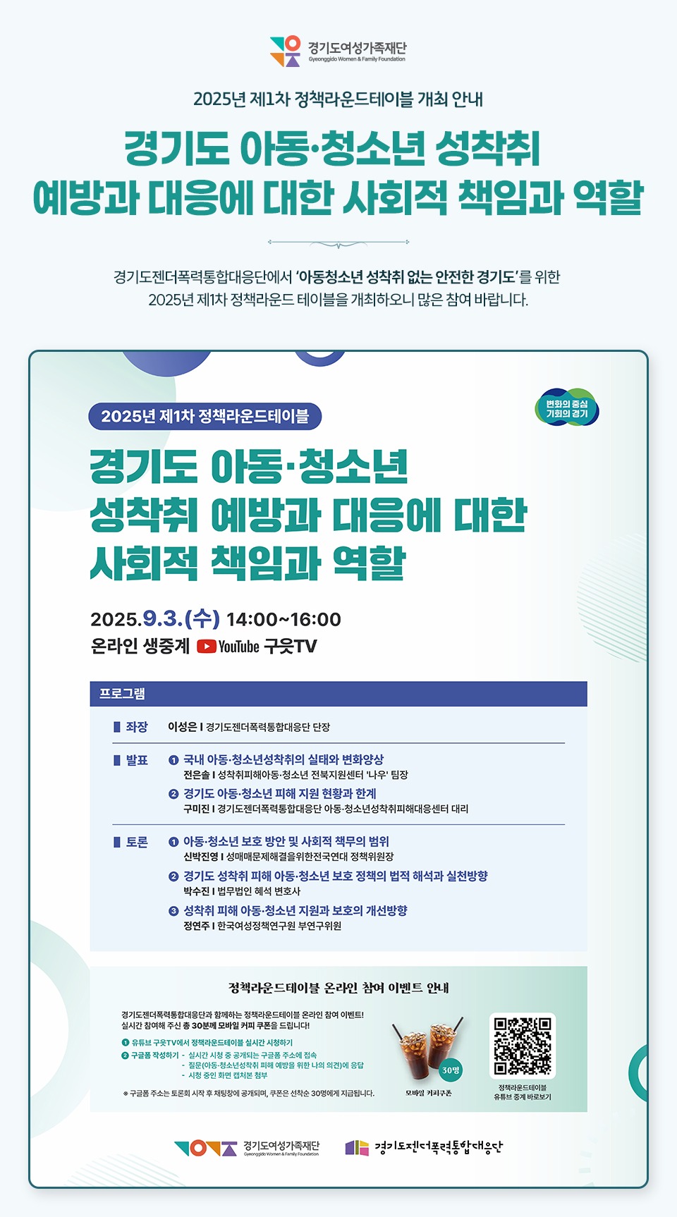 정책라운드테이블: 경기도 아동·청소년 성착취 예방과 대응에 대한 사회적 책임과 역할