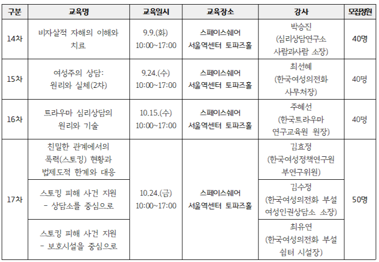 ○ 지원자격: 여성폭력피해자 지원기관 및 바로희망팀 종사자